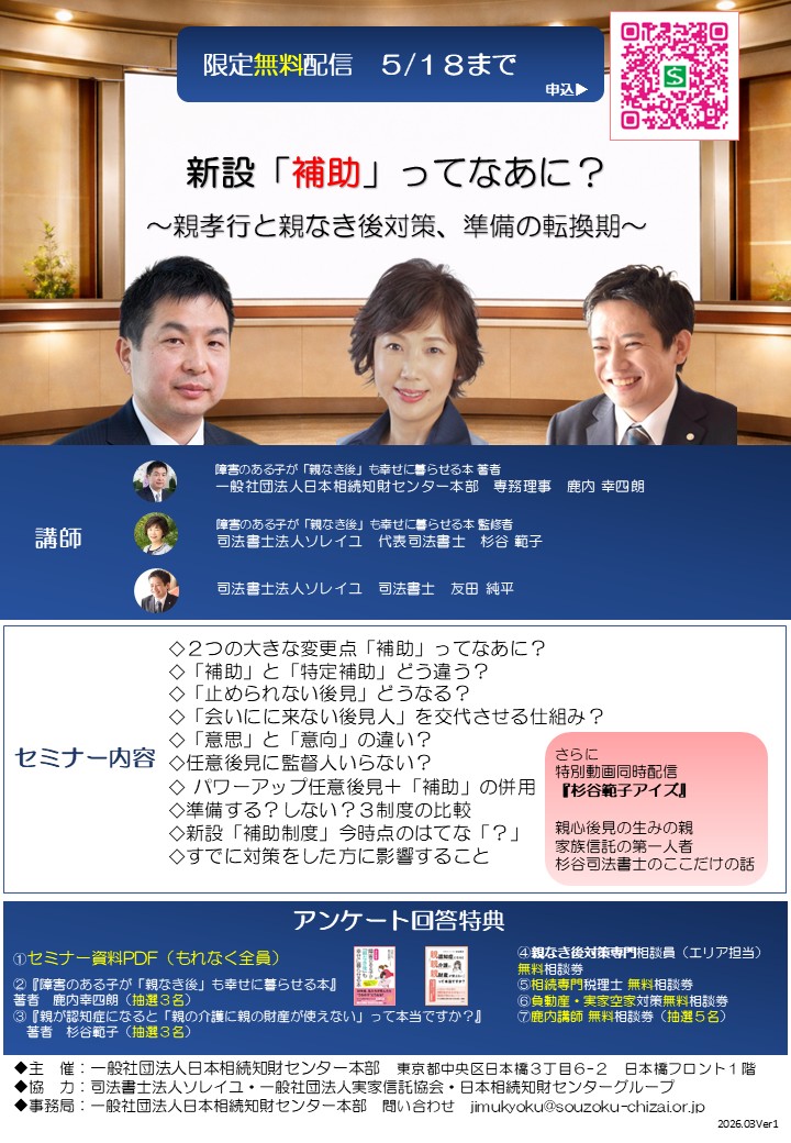 配信開始【新設「補助」ってなあに? ~親孝行と親なき後対策、準備の転換期~】